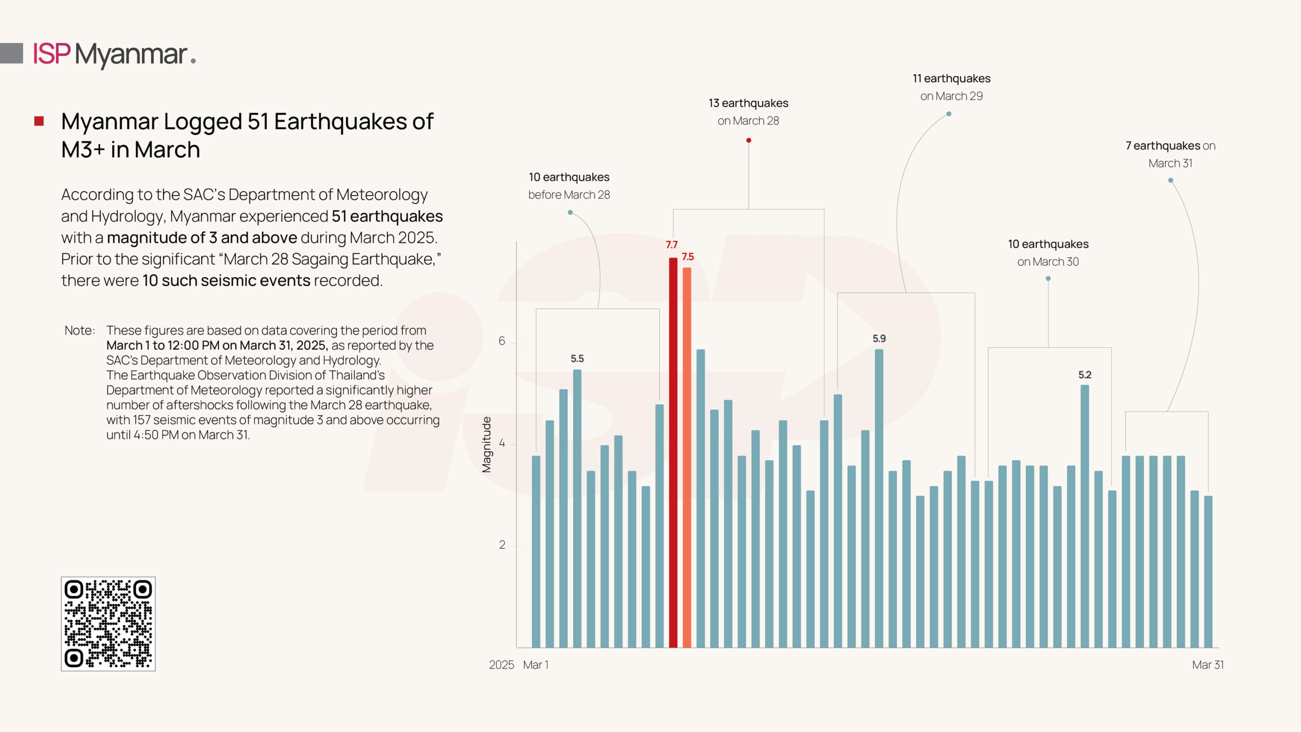 Myanmar Logged 51 Earthquakes of M3+ in March
