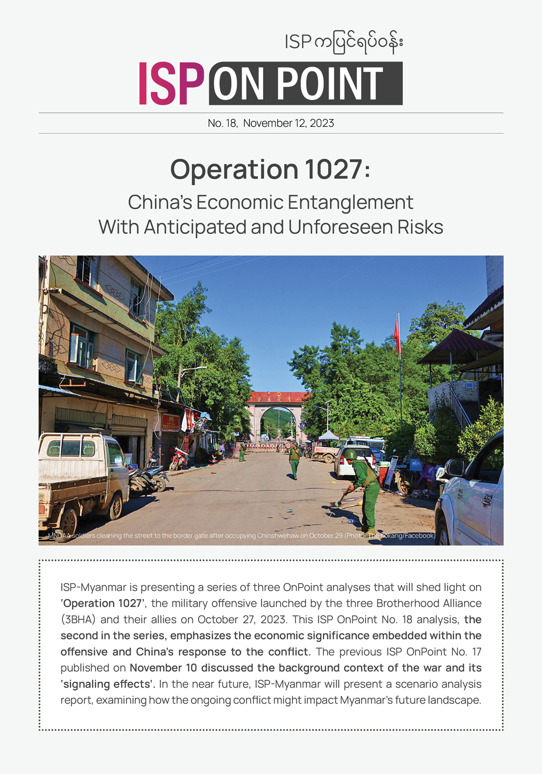 (This OnPoint No. 18 is published on November 14, 2023, as a translation of the original Burmese language version that ISP-Myanmar sent out to the ISP Gabyin members on November 12, 2023.)