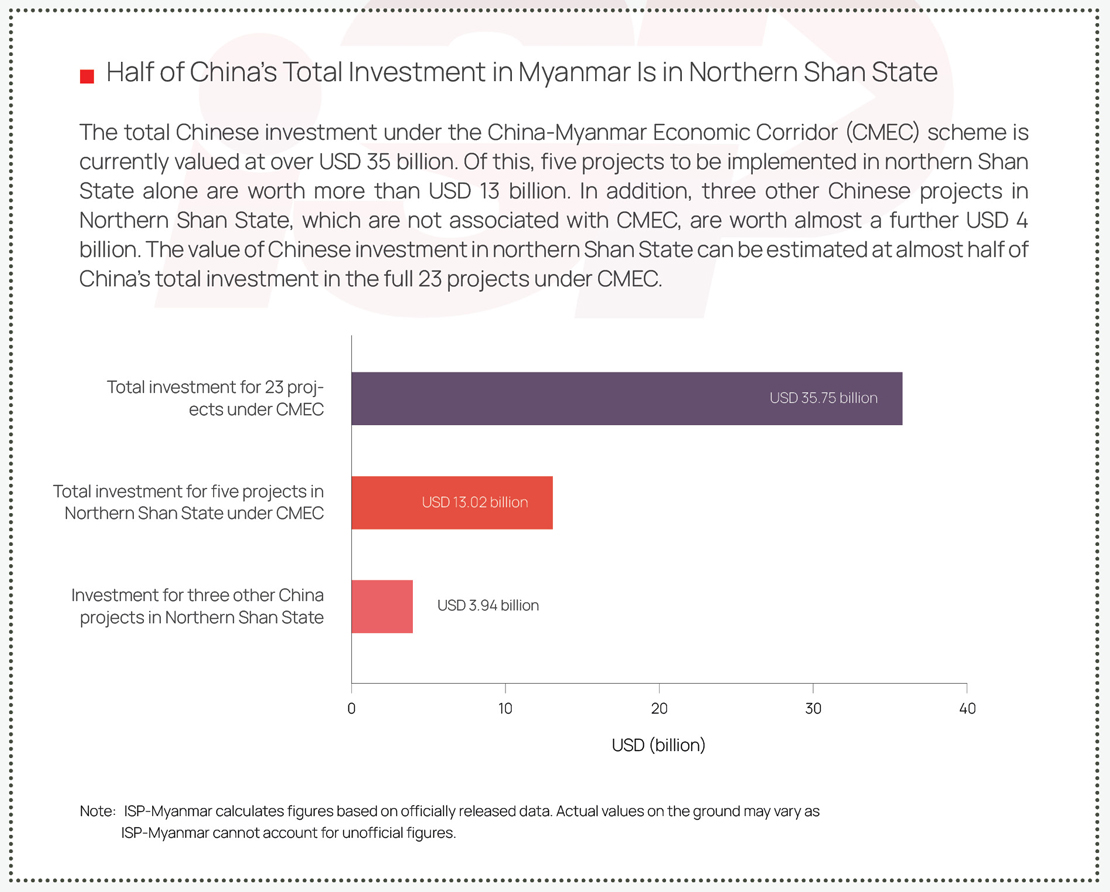 On October 27, 2023, the three Brotherhood Alliance (3BHA), namely the Myanmar National Democratic Alliance Army (MNDAA), the Ta’ang National Liberation Army (TNLA), the Arakan Army (AA), along with other allied forces launched the military ‘Operation 1027’ 1. Since fighting began, border trade with China has effectively halted, particularly trade through the Muse and Chinshwehaw border gates, which together ordinarily account for 91 percent of total border trade between China and Myanmar. The 3BHA forces have recently occupied Kyu Koke (Pang Hseng) as well as Chinshwehaw, and Namhkan, where two of the three planned Cross-border Economic Cooperation Zones to be built by China in northern Myanmar are located. These projects are part of the China-Myanmar Economic Corridor (CMEC) scheme. The armed challengers have thus seized complete control of the areas important to the future development of CMEC and partial control of at least seven Chinese project sites. These include the planned locations of projects such as the Mandalay-Muse railroad, China-Myanmar oil and gas pipeline, the cross-border power grid, and the Gokteik viaduct replacement and the highway expansion project which is scheduled to better connect Nawnghkio (Naung Cho) and Lashio towns on the Mandalay-Muse Highway.