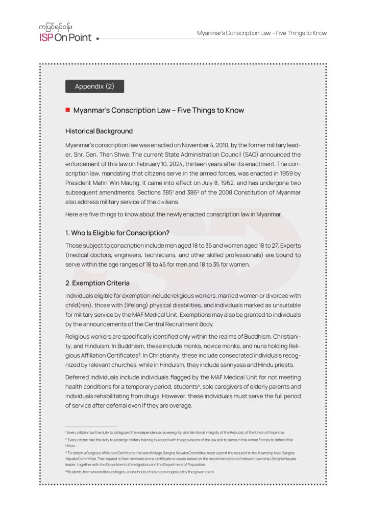 (This ISP OnPoint No. 20 (English version) is published on February 20, 2024 as a translation of the original Burmese version published on February 16, 2024.)