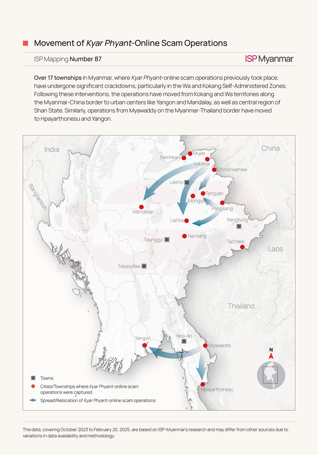 Kyar Phyant has become a notorious Chinese word in the region, representing the widespread online scam operations carried out by transnational crime syndicates involving tens of thousands of individuals. The United Nations Office on Drugs and Crime (UNODC) estimates that these fraudulent activities have caused economic losses ranging from 18 to 37 billion U.S. dollars in East and Southeast Asia, as stated in their 2024 report (UNODC, 2024). These operations are not only ravaging the region but also spreading like a devastating cancer across the world. Tens of thousands who fall victim are trafficked and trapped within criminal strongholds along various borders, such as Cambodia, Laos, and Myanmar, where they face severe torture and forced labor.